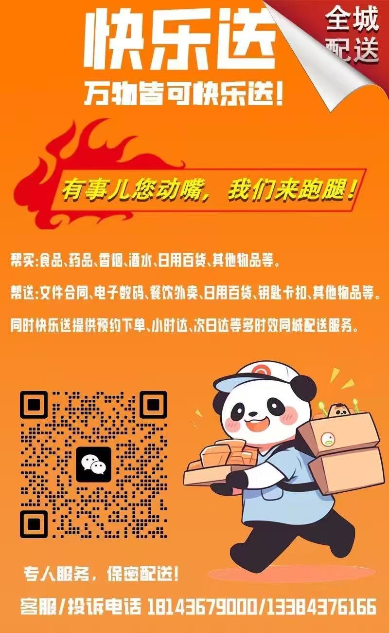 幫送:文件合同、電子數(shù)碼、餐飲外賣、日用百貨、鑰匙卡扣、其他物品等。