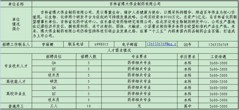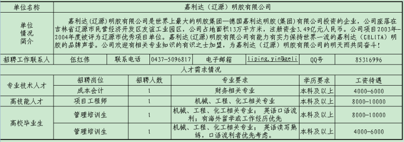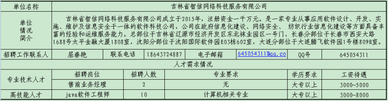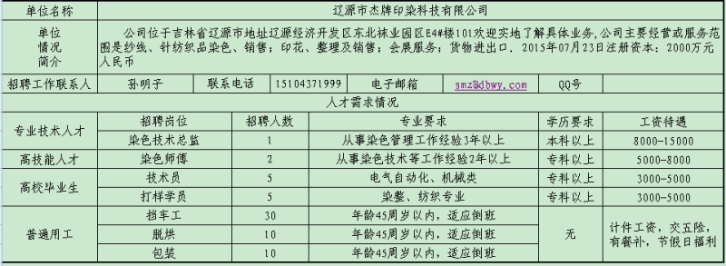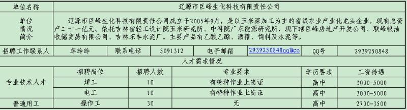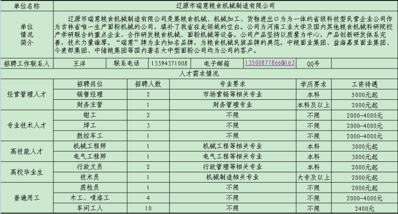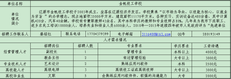 遼源市用人單位人才需求信息情況表