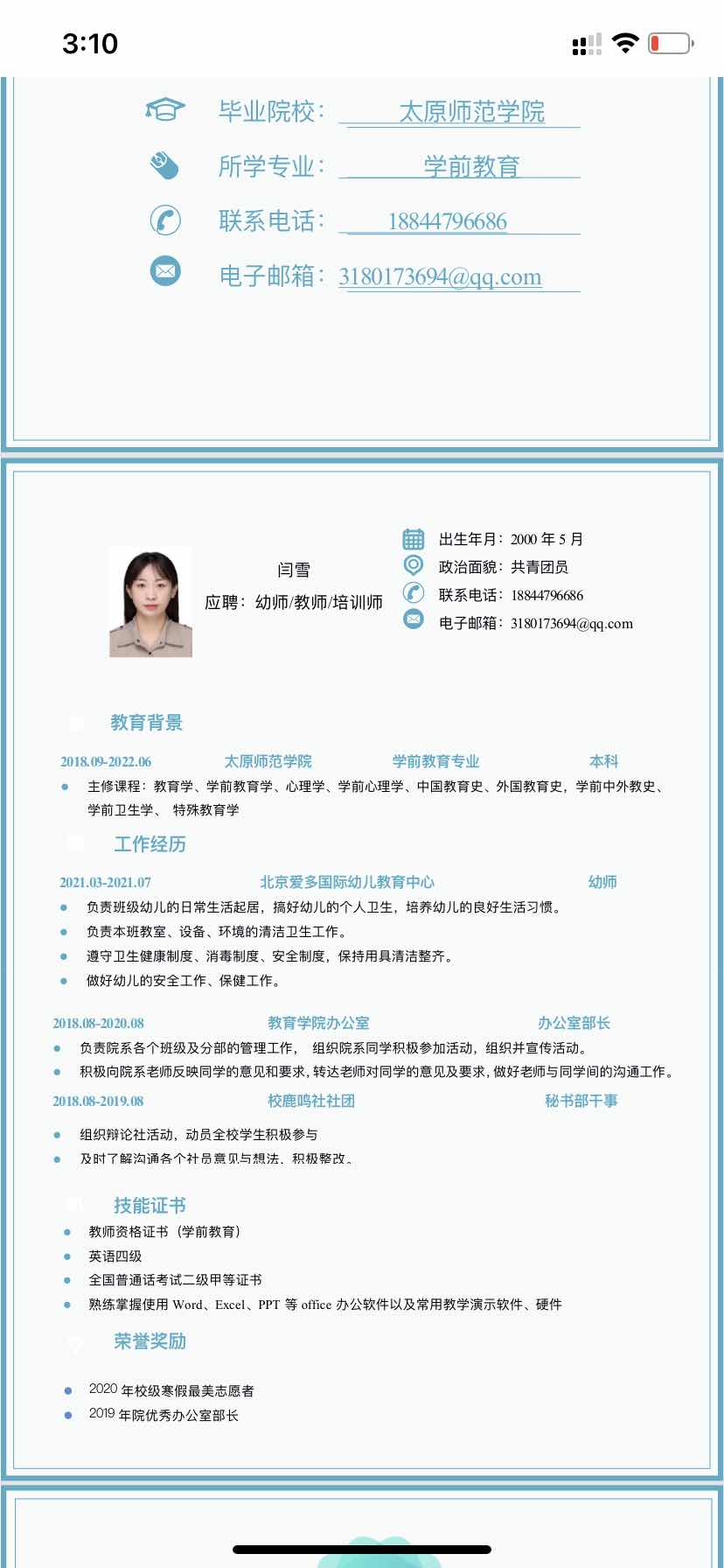 感謝您百忙中垂閱我的自薦書,我叫閆雪,是太原師范學(xué)院即將畢業(yè)的本科生。